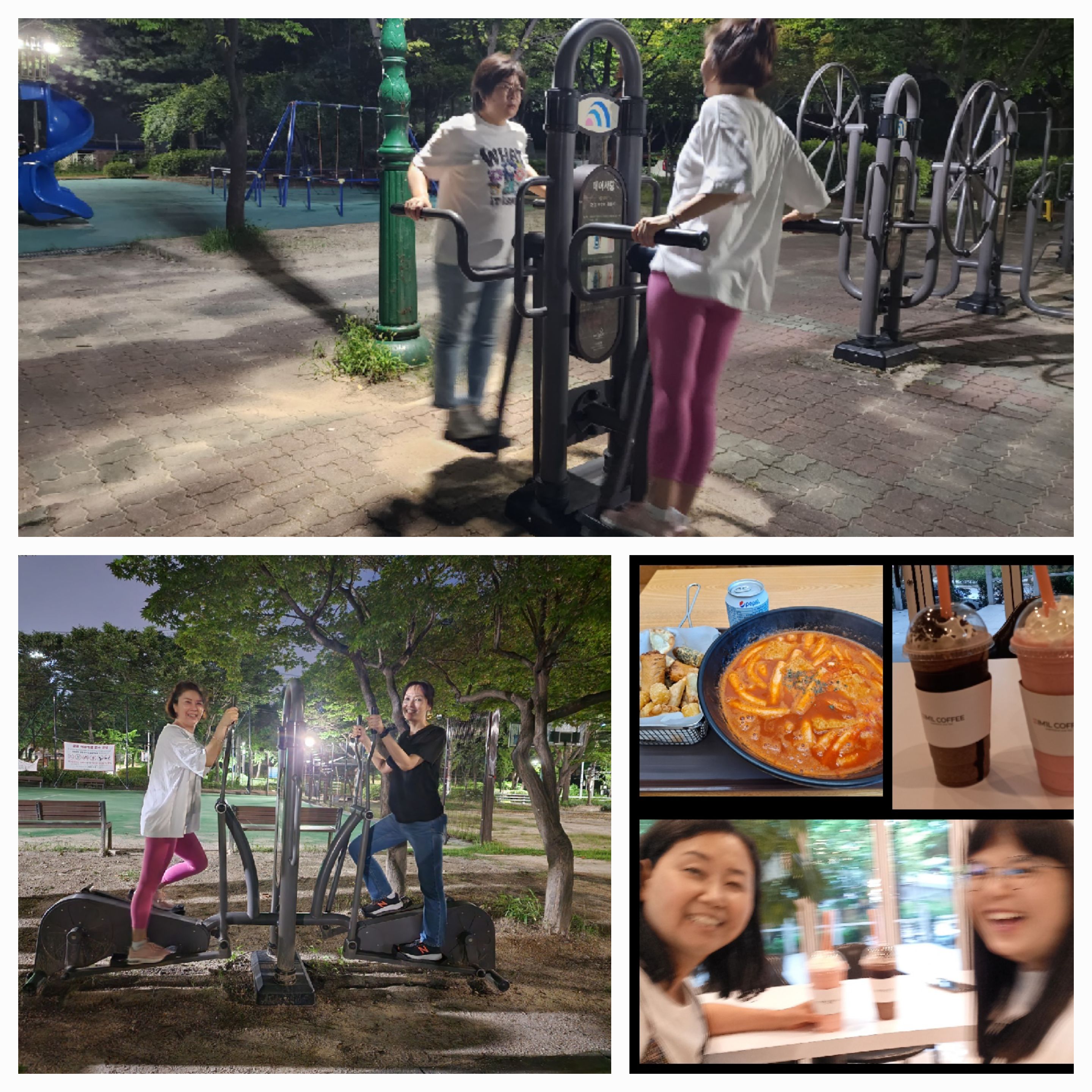 법동 삼호공원을 종착지로 국세청을출발 중리초를 거쳐 중원초를 경유해 삼호 공원까지 돌아보았다. 후덥지근한 날씨였지만 공원에서 마주친 중년들의 걷기와 공원에 설치된 기구로 몸을 움직이며 운동하는 모습이 정겨웠다. 우린 옆놀이터에서 요철로된 흔들리는 말과 시소를 타며 동심에 크게웃었다. 같은시간 장은영님은 학교제자와 뜻깊은 만남을 공유해주셨다. 우린 각자 장마와 습한 7월의 더운여름을 지나가고 있다.