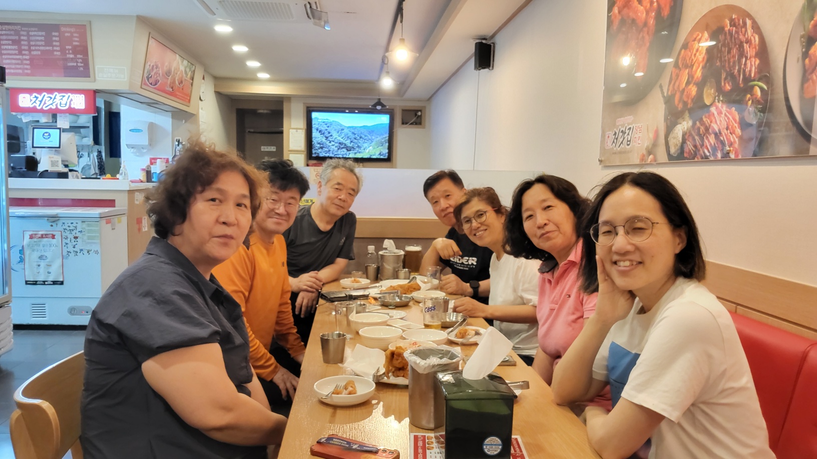 걷기를 끝내고 화기애애한 분위기 속에서 음료, 과일등을 나누어 마시고 먹으며